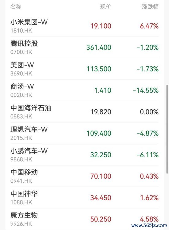 盘面上,大型科技股普跌,阿里巴巴-SW跌2.43%,腾讯控股跌1.2%,快手-W跌3.39%;内房股与物管股携手下挫,世茂集团、雅居乐集团跌超13%;中资券商股低迷,海通证券、中金公司跌超4%;连续上涨的光伏股全线回落,福莱特玻璃跌超6%;乘联会预计4月新能源车销量环比微降,汽车股普跌;影视股、啤酒股、彩票股等纷纷下跌。